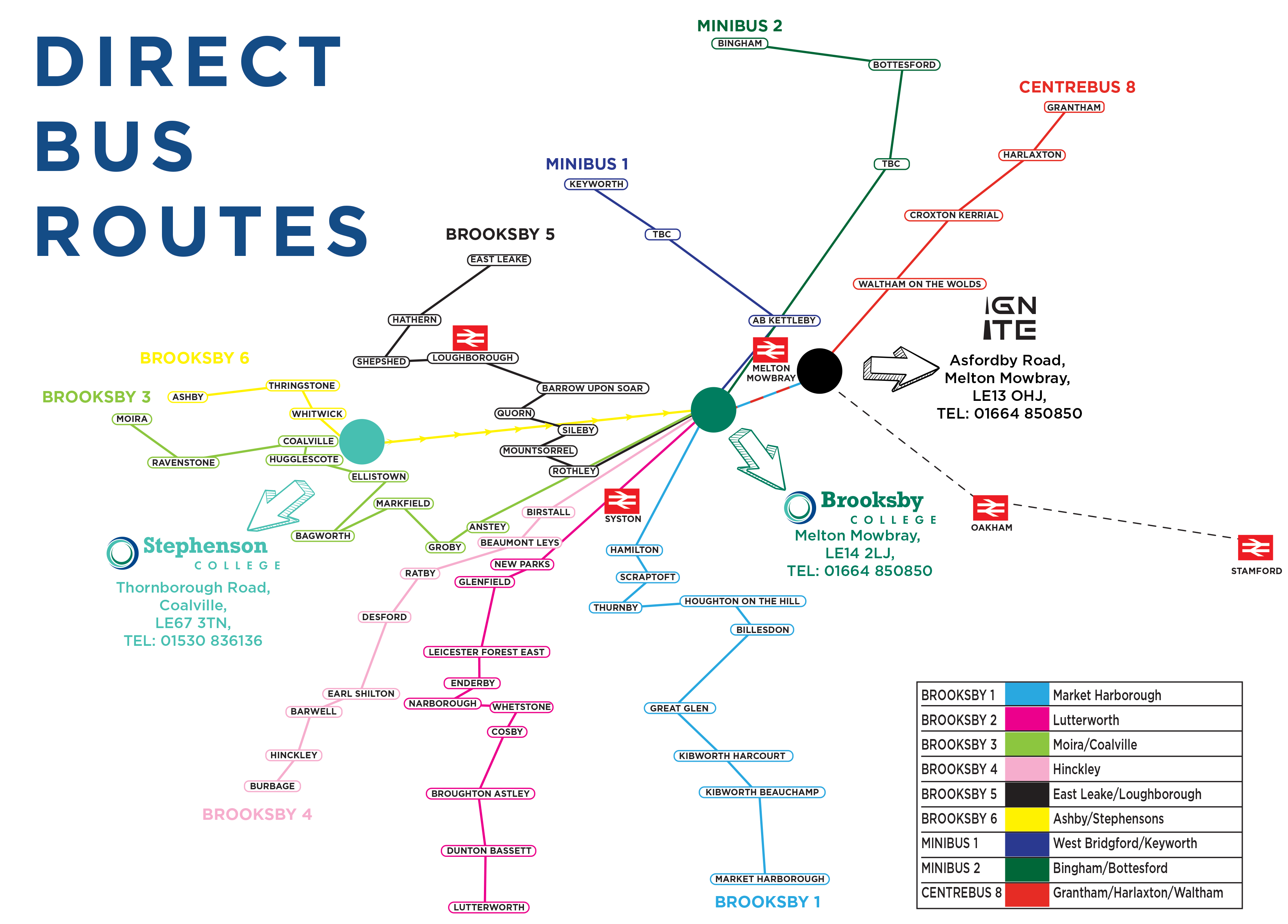 View our Brooksby College Bus Map. Please note, bus routes are correct as of January 2026 and are subject to change.